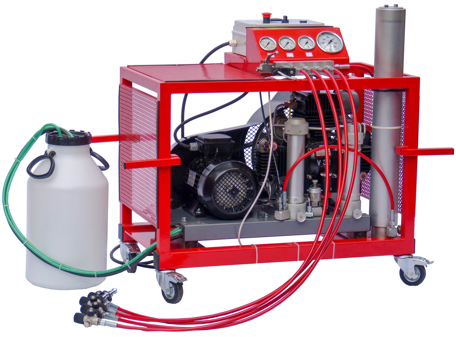 • Large high pressure air purification filter with big cartridge (change 75 Mhrs.)